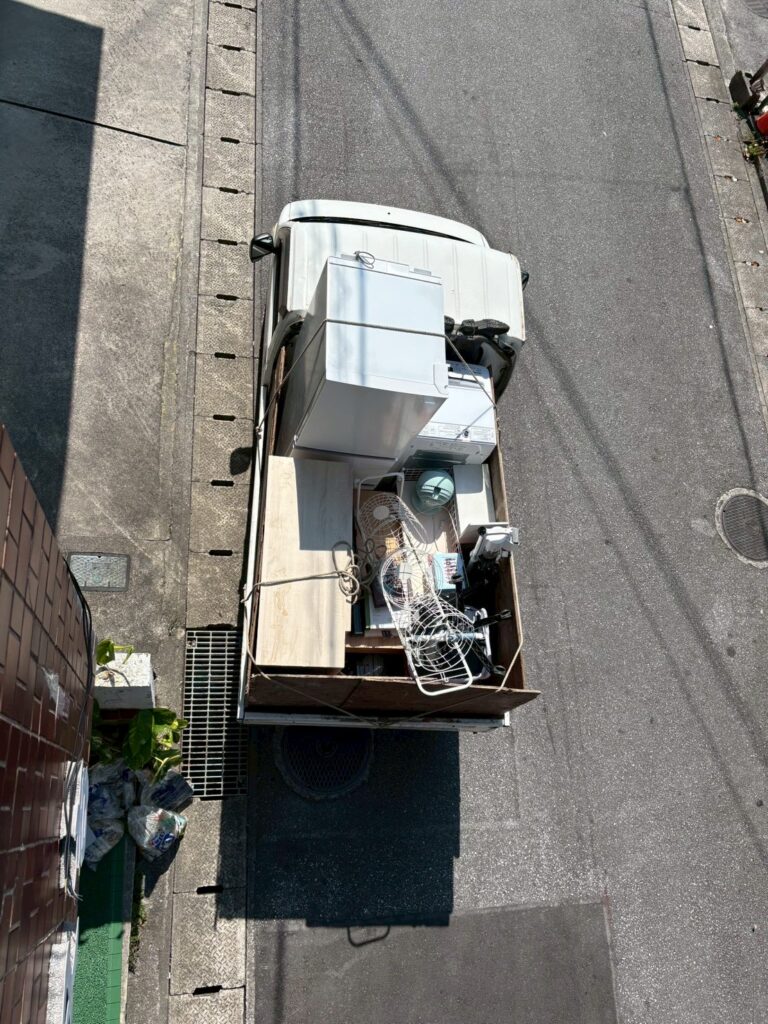 軽トラの荷台も、冷蔵庫からマットレス、細かな生活雑貨までプロの技術でキッチリ積み込み完了です!
